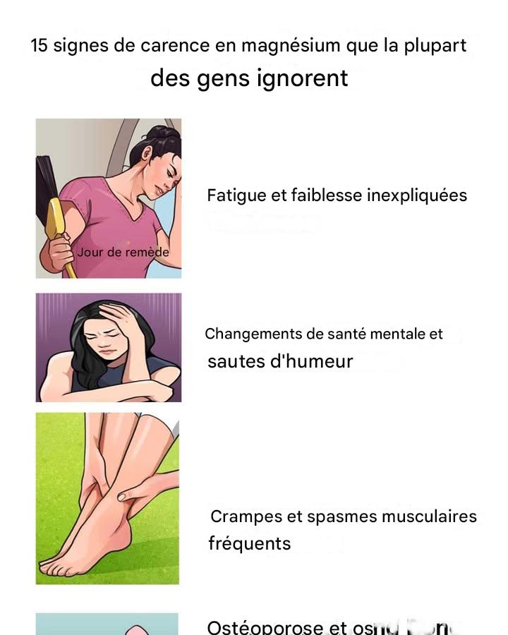 Le magnésium est un minéral essentiel qui joue un rôle crucial dans de nombreuses fonctions corporelles. Malgré son importance, la carence en magnésium est souvent négligée et peut entraîner divers problèmes de santé. Beaucoup de personnes ignorent les signes subtils qui indiquent un manque de magnésium dans le corps. Cet article vise à mettre en lumière 15 signes de carence en magnésium que la plupart des gens ignorent, afin de vous aider à reconnaître et à combler cette lacune nutritionnelle courante.