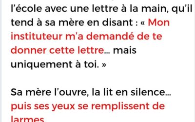 Un jour, un petit garçon rentre de l’école avec une lettre à la main, qu’il tend à sa mère en…