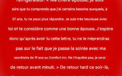Imaginez que vous vous réveilliez un matin et que vous trouviez une note de votre bien-aimé négligemment collée au réfrigérateur,…