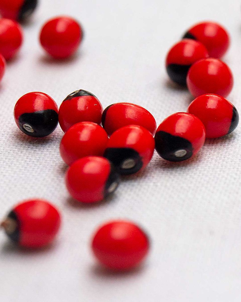 À y regarder de plus près, les objets ressemblaient à de petites graines brillantes avec une coloration rouge et noire frappante. Ils étaient différents de tout ce que je pensais trouver dans une sauce à spaghetti en conserve. Intrigué, j’ai décidé de faire des recherches sur ces graines étranges pour comprendre ce qu’elles pouvaient être et comment elles avaient fini dans mon dîner.