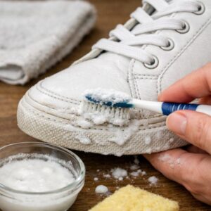 Les chaussures et baskets peuvent rapidement se salir, surtout au niveau des semelles et des coutures. Une vieille brosse à dents est un excellent outil pour frotter la saleté et les taches. Utilisez un mélange d’eau tiède et quelques gouttes de liquide vaisselle. Trempez la brosse à dents dans la solution et frottez les zones affectées de vos chaussures. Pour les baskets blanches, une pâte composée de bicarbonate de soude et d’eau peut aider à éliminer les taches difficiles. La petite taille et la maniabilité de la brosse à dents vous permettent de nettoyer autour des détails et coutures complexes, laissant vos chaussures fraîches et neuves.