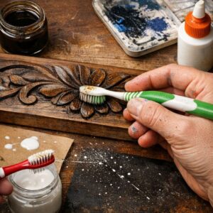 Les artisans et artistes peuvent réutiliser de vieilles brosses à dents en brosses de détail pour des projets de peinture et de teinture. Les poils rigides sont parfaits pour ajouter de la texture ou pour éclabousser de la peinture de manière contrôlée. Utilisez-les pour appliquer de la colle ou du vernis dans des zones petites et précises. Lorsqu’on travaille avec des teintures pour bois, une brosse à dents peut aider à appliquer des finitions sur des détails sculptés ou des motifs complexes, assurant une application uniforme et minutieuse.