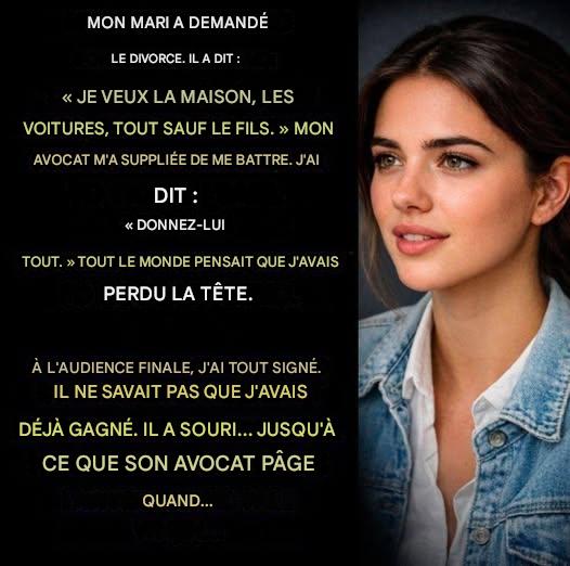 L'avocat de mon ex s'est penché vers lui et lui a murmuré cinq mots. Cinq seulement.
